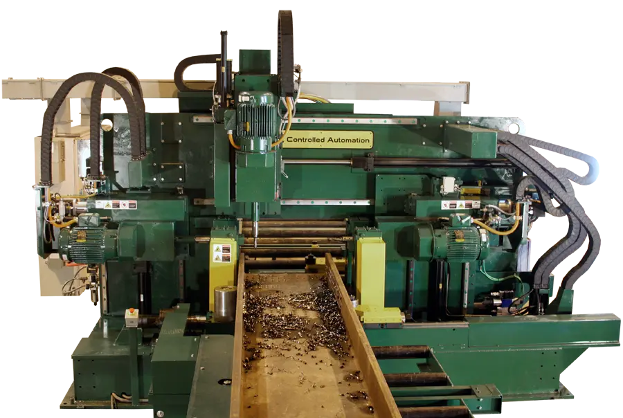 The build quality on the DRL-348TC is like no other drill – built like a tank with a weight of over 30,000lbs for handling years of rugged use in a harsh environment. Controlled Automation designed it to handle the LARGEST 48″ (1.2m) wide 1,000lb per foot (1,488kg/m) material with ease. Our unsurpassed X-probe measuring system ensures you have EXACT measurement on the length of your material far exceeding the accuracy of a wheel measurement tool by any manufacturer.